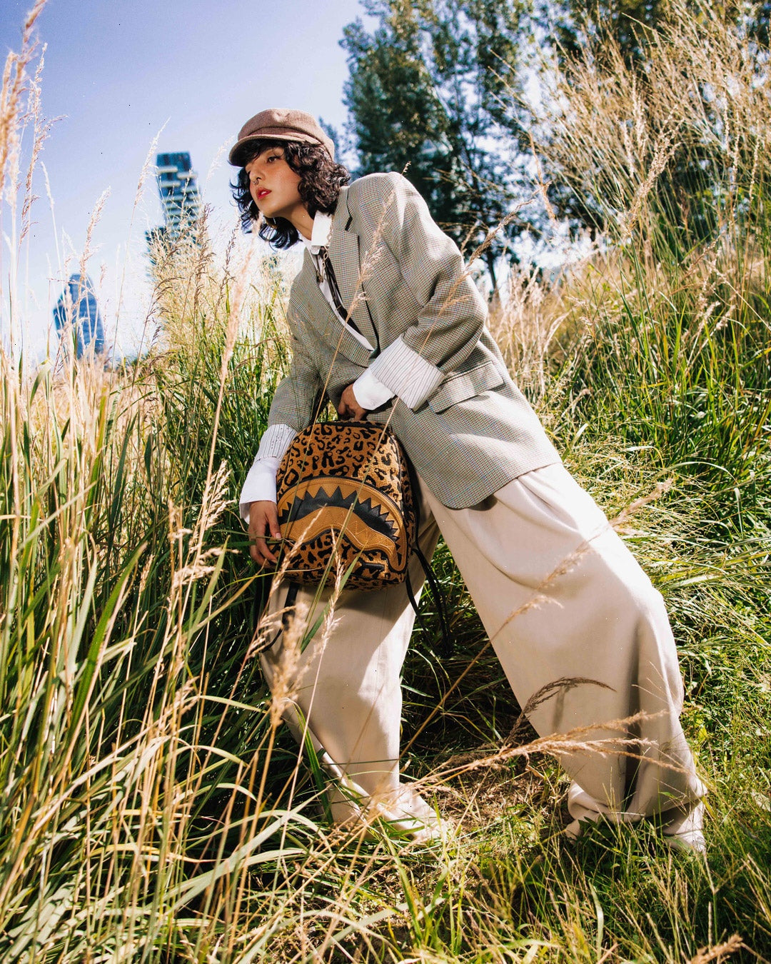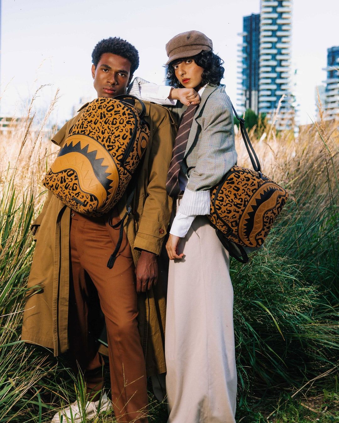 Dimensions: 10" x 5" x 11.5" ? Two large main zippered compartments ? Side pockets ? Zippered Stash pocket ? Adjustable straps for custom sizing ? Gold zippers with metal hardware